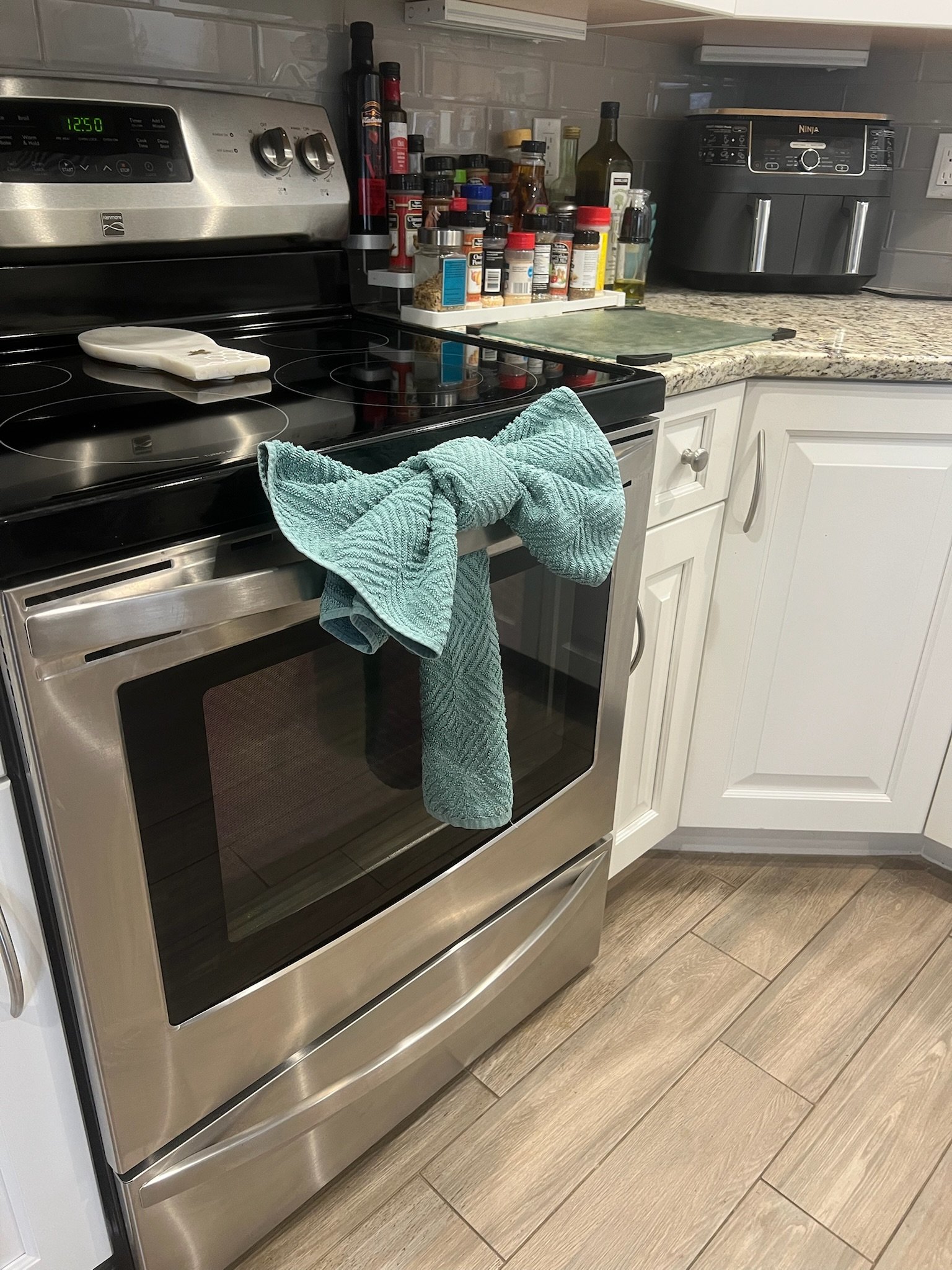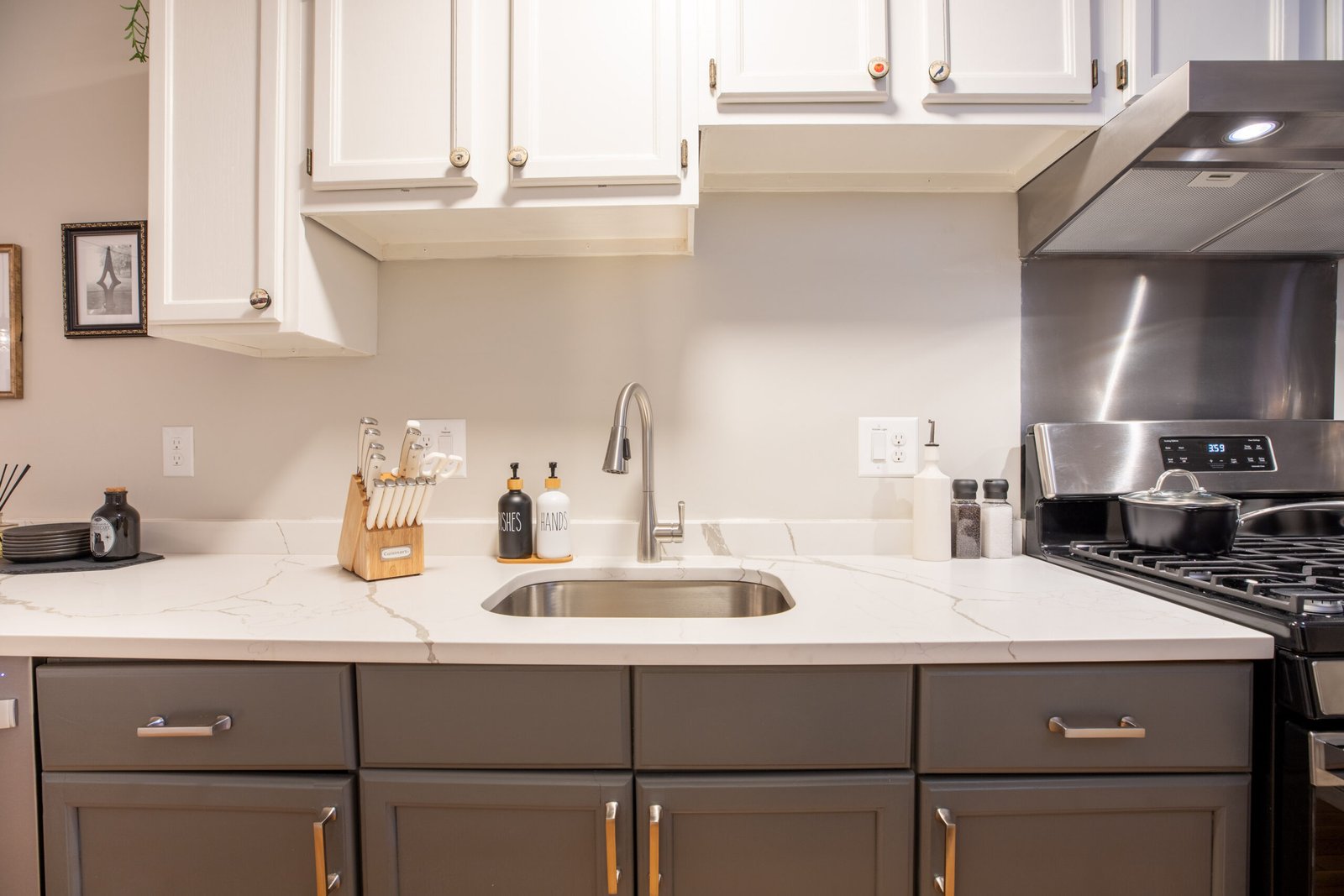 Wipe and sanitize inside cabinets for a spotless kitchen.